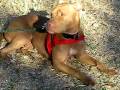 Foster update: I've foster Jasmine for 1 1/2 weeks, and she has changedmy view on terriers. What a LOVER! She lives to give kisses, and gets so excited when she geets you at the door. She rools over for a nice belly rub, too! She does not shoe any signs of aggression, and lets you take bones and toys from her without fuss. I'm suprised by her intelligence. She does not tkae long to act on commends and can sit, lie down, get off and understands no. She does attemp to get on the couch, but does not get up once told no and off. We are working on stay and come which she responds to when you have her attention. Jas loves to play and is very curious. She gets along well with other dogs at the dog park, loves to chase critters. She can run like the winde, loves to chase tennis balls and can jump very high. She may make a great duck dog. She is very athletic, and can jump a 4 food fence like she is running hurdles. When she is focused on a cat there is no stopping her. She is not very good on the regular leash, but walks nicely on a Gentle Leader. She is crate trained and house trained. She is so eager to please that she will win your heart!