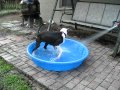 • Personality Quirks Willow will get totally airborne to catch a Frisbee in the air or catch a bouncing ball. She will also chase and bite at the water streaming from a garden hose.
