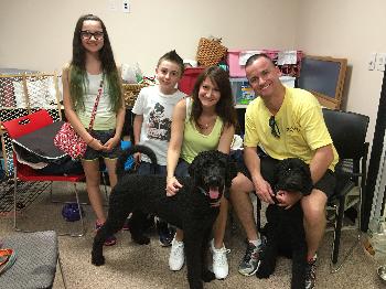 We are so happy to have our new fur babies home with us! Birdie and Bogey are adjusting well and providing lots of exercise for the family! They did a fantastic job in the car ride home and to the vet yesterday for their wellness check and booster shots. We have been jogging around the neighborhood with them and while they are tuckered out we then work on getting them to walk along side us instead of pulling us. They LOVE the yard, running laps and chasing each other and they have lots of toys and treat puzzles to keep them engaged. They are so sweet and cuddly....we love them!