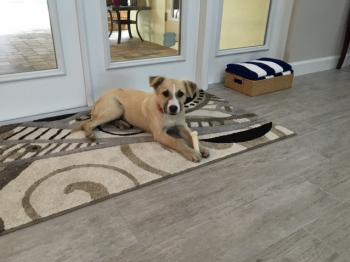 We are so in love with our new addition and wanted to send you a few pictures of Frappe, who we renamed Bailey! She is learning fast; already knows sit, lay, and of course "no" which is important. She is just starting to fetch, meet others in the neighborhood, and having a grand time. She needs to grow a few more months, but will be registered for training as a service/therapy dog, so I can take her to hospitals, homes, etc, and spread the joy. We are setting up an animal trust for her, and I told my attorney that you are to be named in that trust- we will let you know when that happens. It will be a few weeks, because I have surgery next week.