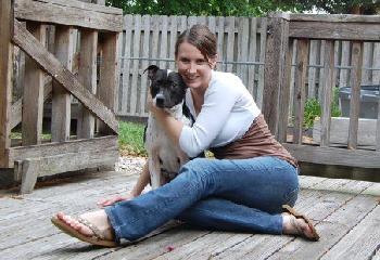 Jennifer, I've been meaning to email you for a while, but time seems so overtaken now! I just wanted to let you know how Luna is doing. She is 40 pounds and very healthy the doctor says. She loves to run around in our backyard, tear apart her stuffed animals, terrorize the cats...let's just say, she's definitely a puppy! I hired a personal dog trainer who I had about 10 sessions with and she is easier to control, but not completely controllable yet. We're working on greeting people at the door and not jumping up. I don't think I've ever seen a dog jump as high as she does!! I have attached a picture of us on my deck so you can see how much she has grown - much bigger than the 17 pound dog I adopted from you! Thanks again for such an adorable puppy! Kathleen & Luna