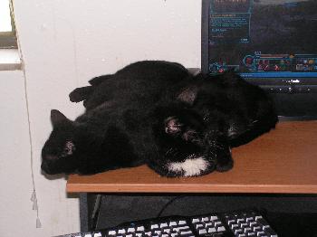 Hi Catherine how's it going? Just wanted to send you this cute picture of Pye and my old cat Shetaan. Pye is doing very well and is very sweet. He's getting overweight and I have him on a diet. What's funny about this picture is that I set my computer desk up specifically so I would have room to do everything I need to do...the results are funny. Have a great day! Timothy