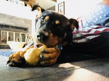 Roxie rescued us when she was 8 years old. We were hesitant to add an older dog to our family but it was love at first sight. She has brought so much unconditional love and joy to our family. As she ages , she has slowed down but can still muster alot of energy when the Grandkids visit.