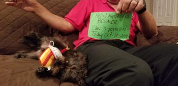 This is our precious Boomer known to you as Romeo. He was adopted on Feb 1, 2019. He's come a long way. Some personality he has. He wants to control everything, but he's gotten better. He is so Happy with his Daddy, he is in heaven right there. And my husband loves him too.