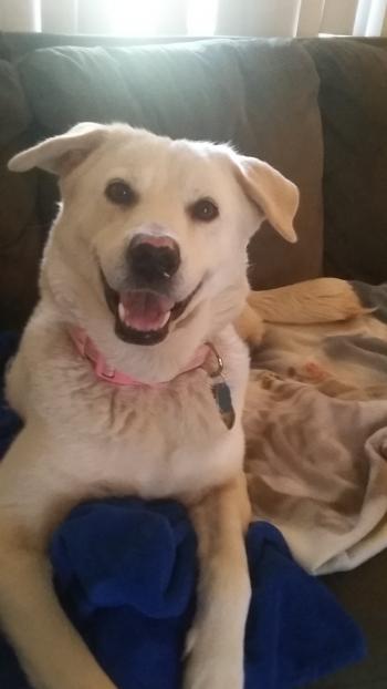 Hello again. I just want you to know how athena is doing since I adopted her from your care. She is very happy and loves running around in the backyard, as well as taking walks and going to the dog park. She curls up on my bed at night and loves to chase those squirrels. She is doing well on not chasing cats but she's still practicing. I will attach pictures below. Thank you for the best girl ever.
