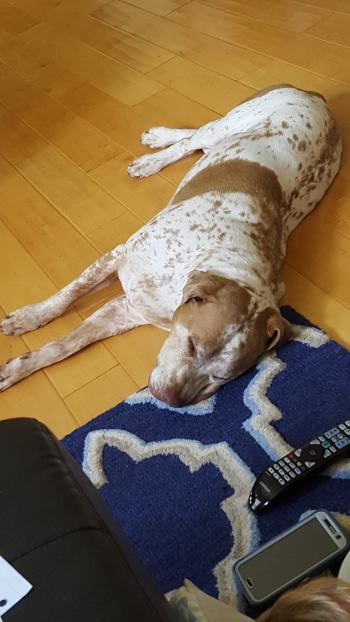 I know it hasn't been long, but Chip has made himself right at home! He's been such a good dog and we're so happy to have him. Relaxed