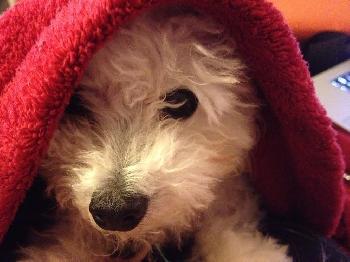 Hello, I'm Julia, the girl who adopted Aubry the little Toy Poodle. I renamed him Stuart Little, and he is doing very well with me. Stuart follows me everywhere and always wants to be in my arms. I'm very happy to have him and I couldn't imagine life without him. He was 3.5 lbs when I first took him to the vet and since then he's gained 1.3 lbs! He looks a lot healthier now! I keep him clean and use the trivexis every month. The only thing I could say I'm a little worried about is that he's had a weird cough ever since I had his teeth cleaned at the vet. Here are some pictures to show you how he's doing.